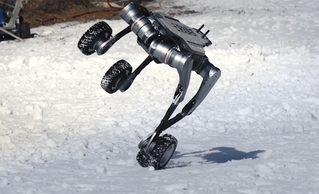从官方视频看,山猫采用了四轮足设计,可原地跳跃,能跨过深沟,还能在雪中前向翻滚360度并稳稳落地,展现了非常高的机动性和稳定性。